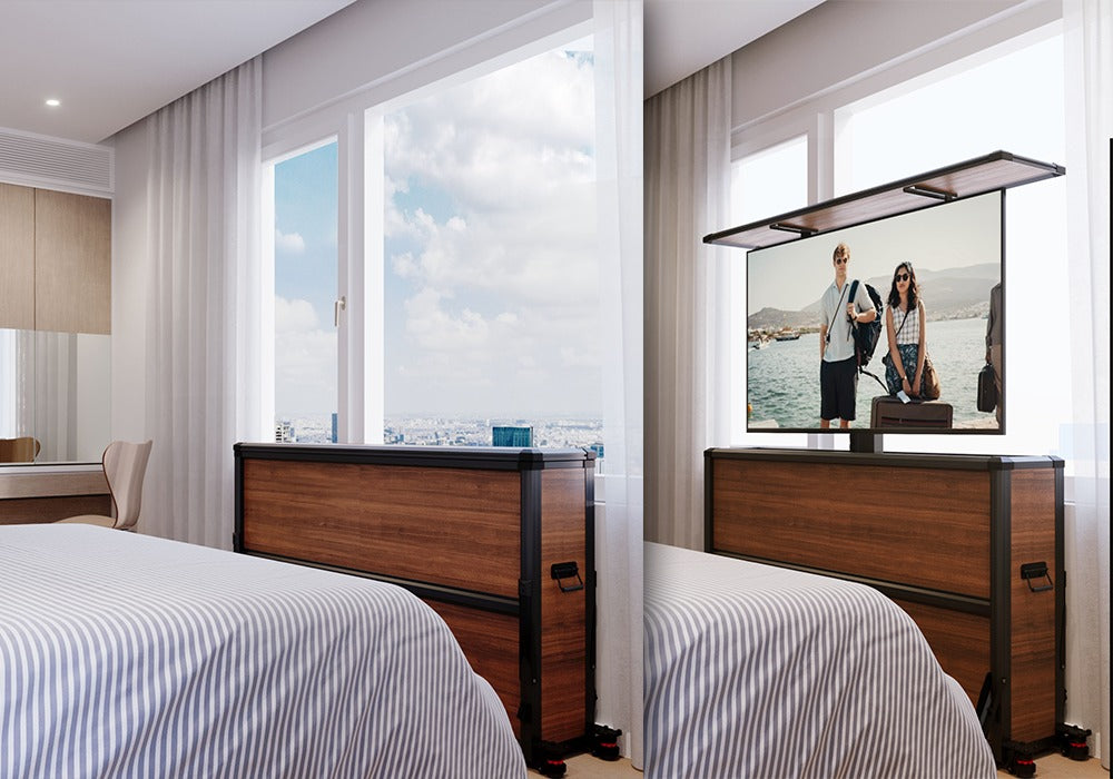 - ✅ Almacenamiento oculto que ahorra espacio : el televisor se retrae completamente dentro del gabinete para una apariencia limpia y minimalista